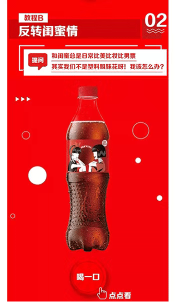 作为快消品,可口可乐在包装玩法上不断推陈出新,紧跟流行,很好的保持住了品牌生命力,为消费者注入源源不断的新鲜感。而“神反转文案+瓶身设计”无疑是可口可乐反转瓶营销中最核心的创意利器,于VI处强化了品牌传播力。