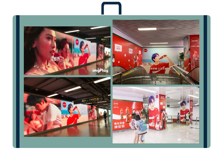 江陵路站的品牌森林通过包柱、吊旗等多形式的站厅氛围打造,突出可口可乐"喝出有情神反转"的产品特点。