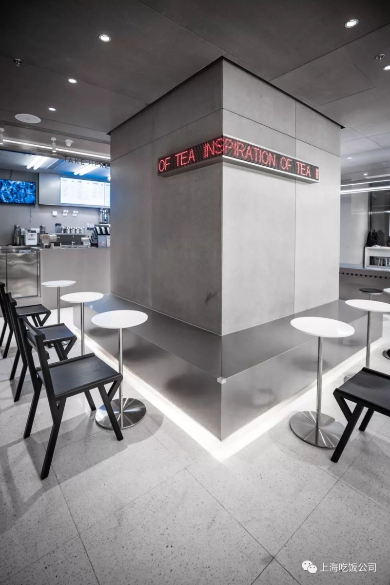 这家店的加了很多LED桌面,工业风灯条等等现代化的金属装饰,有棱有角的黑白灰大格调空间充满了未来感。
