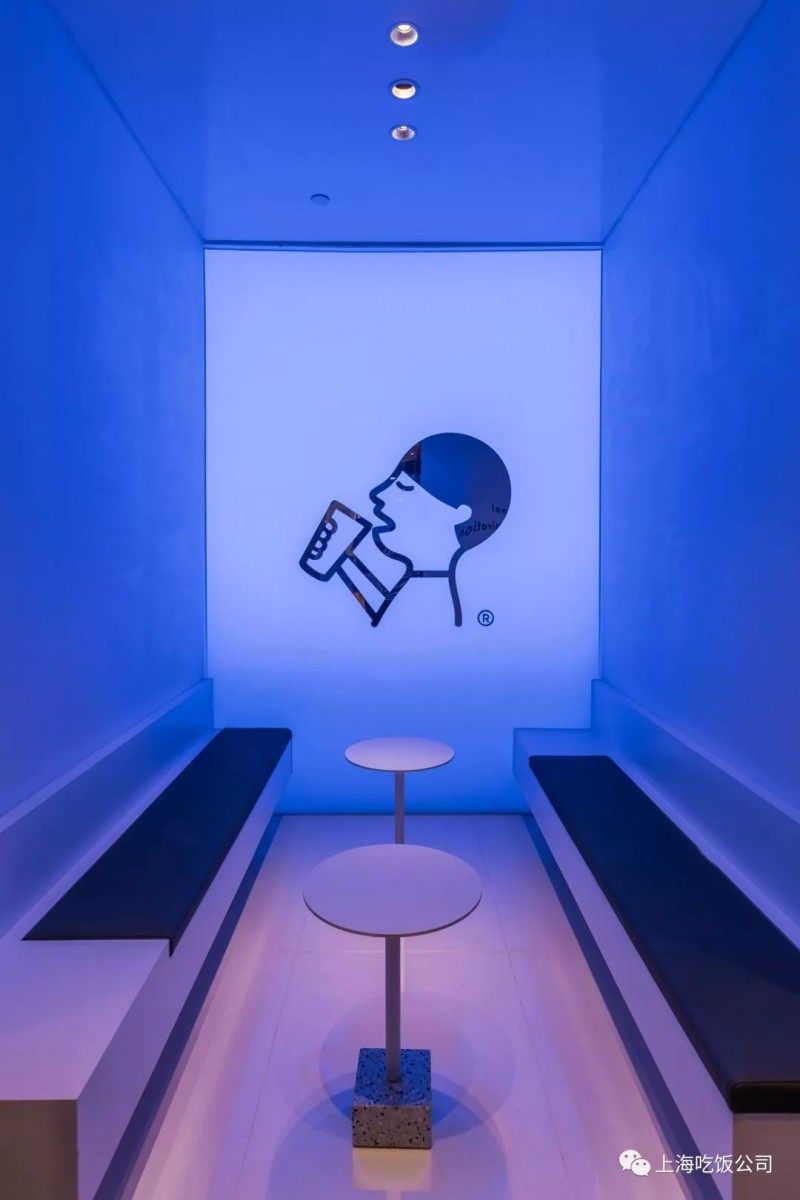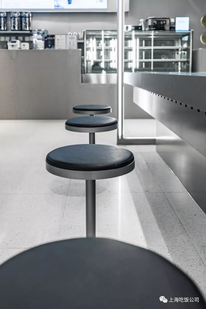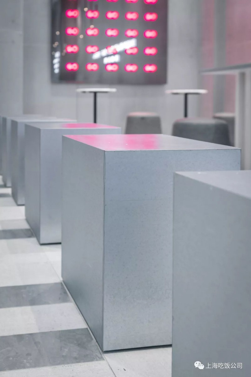 在此基础上加入圆凳和漂亮现代化的霓虹灯墙,使得整个空间更为摩登起来,灯墙平时亮起灯光会使得整个空间增添了些许烟火气息。