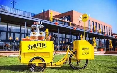 鲜扎闪送会配备标志性的黄色啤酒车