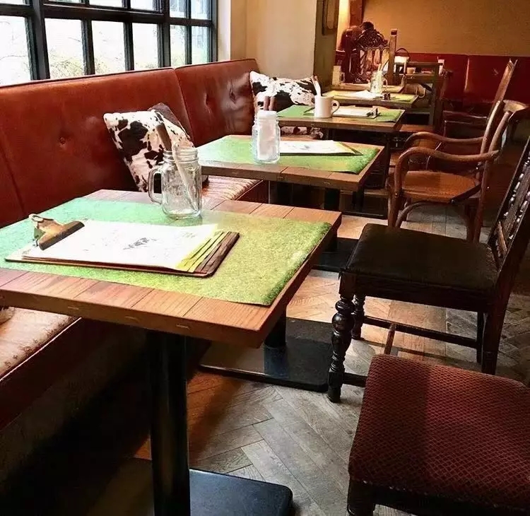 门店的装修清新自然,蓝白色调,森系装饰,加上“青草”桌垫,连靠枕都是奶牛色,仿佛身在蓝天白云下,广阔草原间,品味纯正鲜奶。