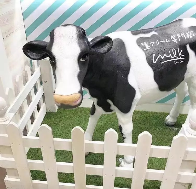 更让人喜欢的是每家门店门口都养着一头可爱至极的“牛”,寓意着店家的奶油真的是新鲜纯正的。它也成为了Milk门店著名的店招,引来无数粉丝前来打卡!