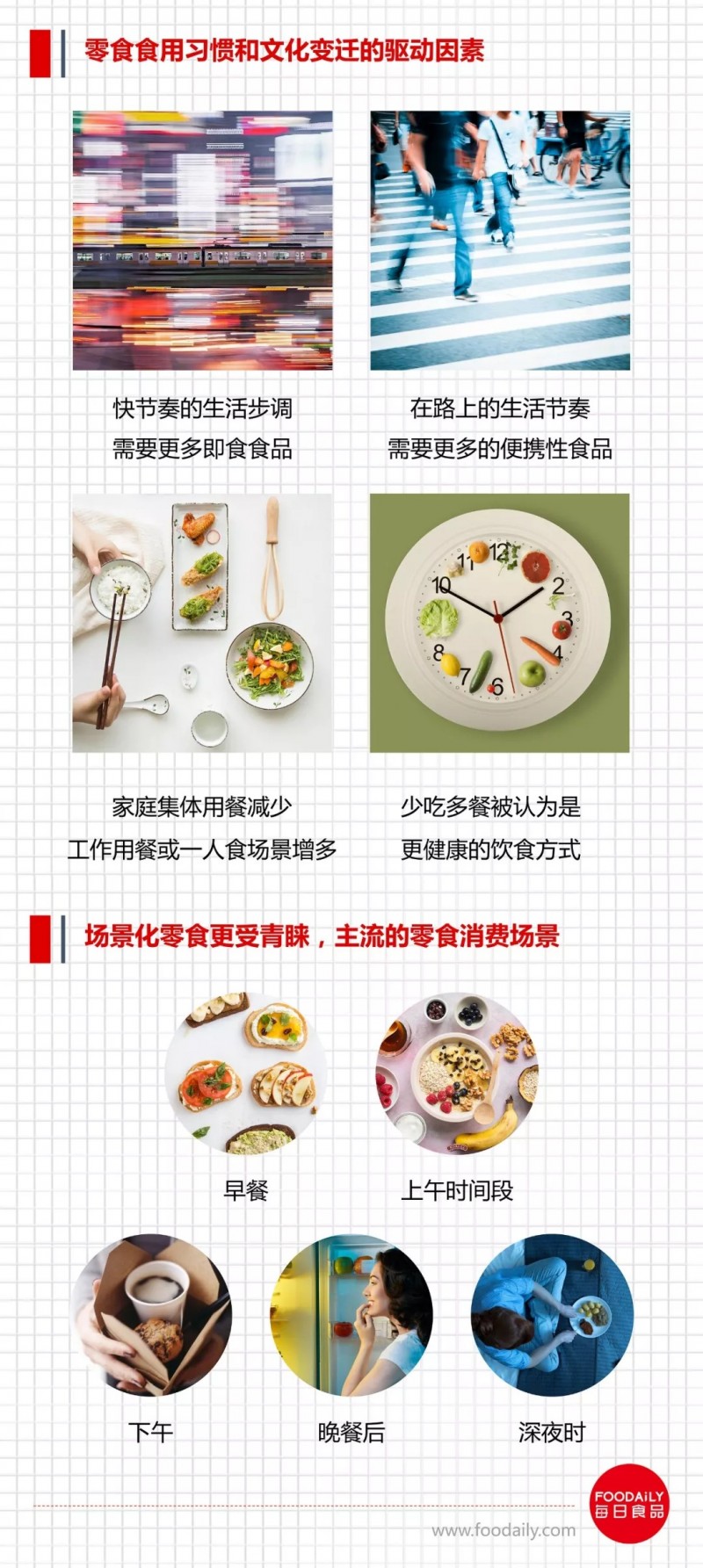 快节奏的生活方式,一人食机会的增加,对少食多餐健康理念的认可等因素都驱动了正餐零食化的趋势。