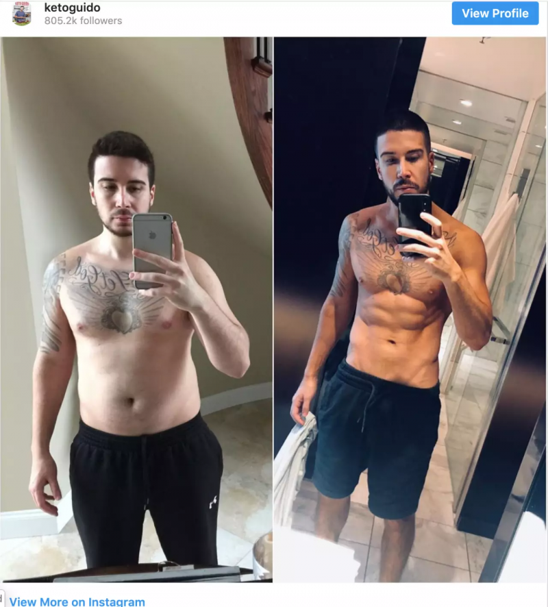 生酮饮食的快速风靡并非偶然。除了明星效应带来的流行趋势,这种颠覆传统饮食饮食结构,更像是一种「文化和社群认同」。比如Instagram上发起的 before & after 的话题,许多成功案例使得keto生酮饮食成为目前热门的饮食现象。
