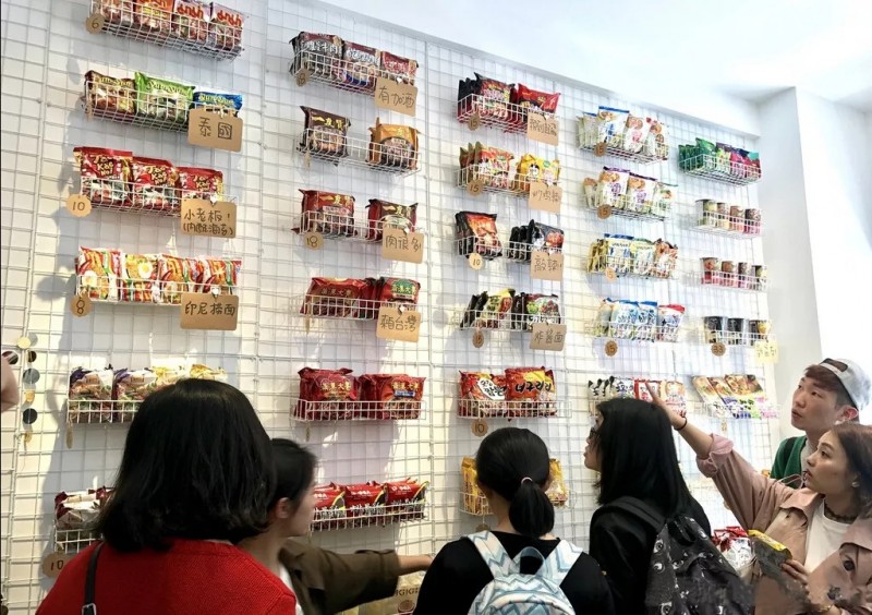 被称为“泡面博物馆”,在泡面英雄,首先吸引顾客目光的一定是那 “一整面墙的泡面”。据说,泡面英雄的产品团队为了搜罗更好吃的泡面,足迹遍布日本、韩国、泰国、台湾等地,尝遍上千款泡面,最终筛选出百余款适合中国人口味的泡面。其中,有国民经典泡面,亦有网红国外泡面。所以,总有顾客调侃自己“吃着碗里的,看着墙上的”。