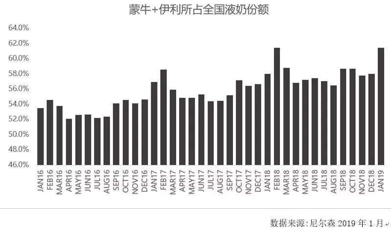 现象三:乳业增长放缓,市场余利被两强尽收