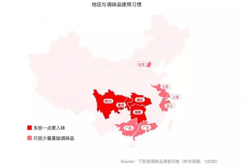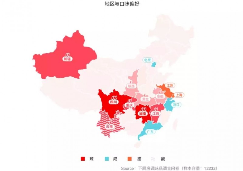 江浙沪地区用户口味轻;川渝、湖广地区用户口味重