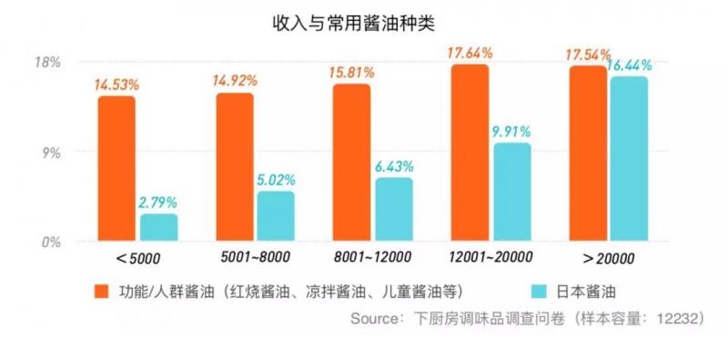 功能醋、果醋这样的“小众醋”,在高收入用户中普及度更高。