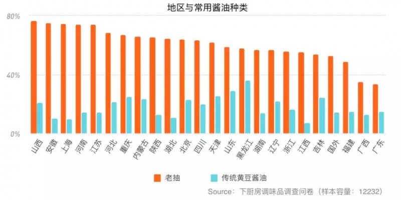 传统黄豆酱油在泛鲁菜区(山东、东北、京津冀等地)及川菜区(重庆、四川)使用更普遍。