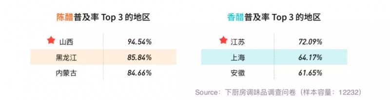 以山西为代表的北方用户更喜欢陈醋;以江苏为代表的南方用户更喜欢香醋。