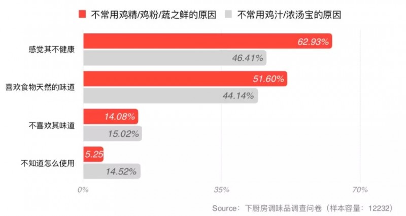 “感觉其不健康” 是用户不常用这类调味品的最主要原因。