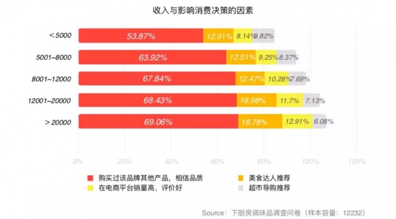 高收入人群往往秉持健康的生活理念,更讲究品味食物天然的味道,他们更不倾向于使用鸡精、味精。