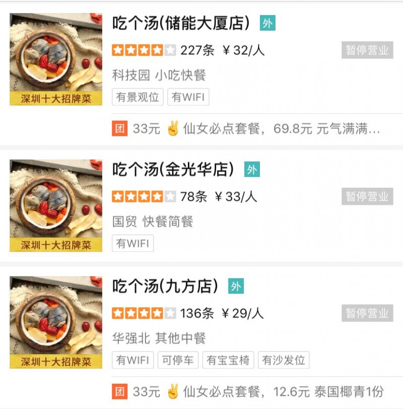 ◎ 目前,大众点评上可查其门店均已暂停营业。