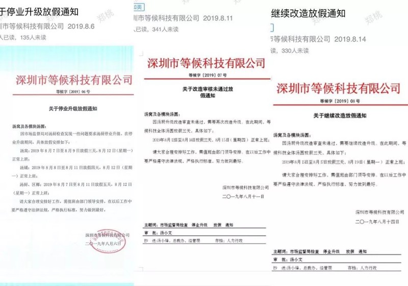 这段时间内,吃个汤对消费者的口径是:“内部设备升级,公司全体放假,8 月 15 日正常上班”。