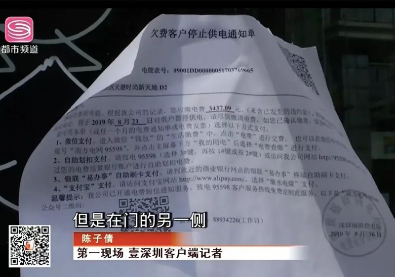 ◎ 贴在门店上的电费欠费缴费通知单。图自《第一现场》。