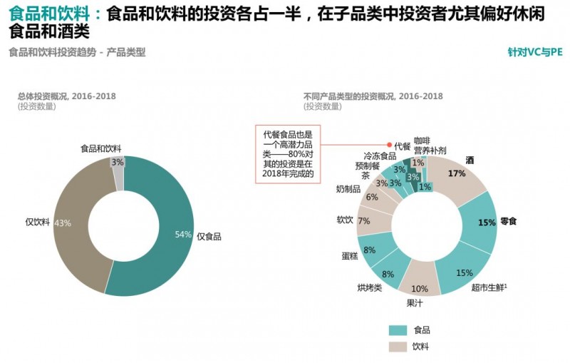 在此之上,报告又将投资细分为食品饮料、服装、零售等领域,并对其中的产品、渠道和科技投资进行讨论。