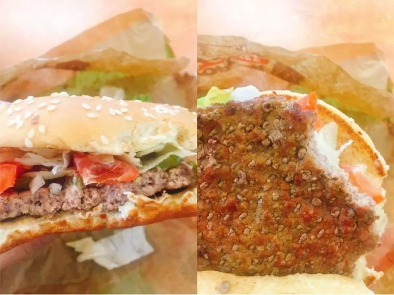 一位身在美国、已经品尝过使用人造肉皇堡的朋友告诉虎嗅,他感觉人造肉饼整体上没有什么牛肉的“肉味”,也咀嚼不到肉筋,口感更像碎渣,而普通皇堡嚼起来有“筋”的感觉。但他认为,如果不刻意提醒两款汉堡的差别,普通人其实吃不出来太大的差别。