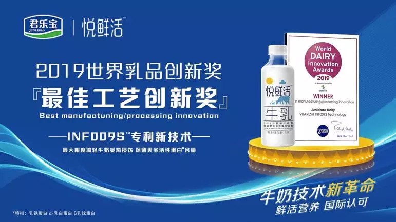 随着消费者生活水平和健康意识的提升,他们对健康的认知更加的理性而具像。在葡萄牙里斯本举行的2019世界乳品创新大奖颁奖典礼上,“悦鲜活”INF009S™杀菌技术荣获2019世界乳品创新大奖“最佳工艺创新奖”,这意味着INF009S™杀菌新技术和“悦鲜活”牛乳得到国际权威的认可。同时也为“悦鲜活”牛乳在消费端赢得了更坚定的市场信心。“悦鲜活”牛乳是符合消费趋势,还可以超额满足健康需求的大单品,有着相当广泛的用户基数和广阔的市场空间。