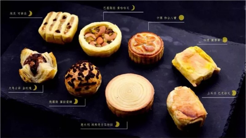 今年中秋,故宫拿出一样【和】饼,盒身重现丝绸之路,盒内小点结合各国特色食材,单一款中国的和合八宝,你就吃到了新疆的核桃仁、杏仁、榛子、巴旦木,福建的橄榄仁,内蒙巴彦淖尔的瓜子仁,五原县的南瓜仁,河南的黑芝麻。此外还有,巴基斯坦的坚果塔,印度的咖喱角,土耳其的果仁蜜饼,大马士革的自由风情……