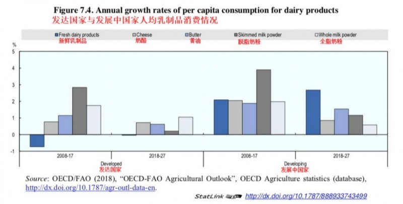但是,人均乳制品消费还远远不够。中国乳制品工业协会等机构发布的《2018年中国人奶商指数报告》显示,2000年,我国人均奶制品消费量仅7公斤,2017年达36.9公斤,平均每天100克。尽管如此,还远未达到《中国居民膳食指南》推荐的每天300克标准,不足亚洲乳品平均消费水平的一半和发达国家平均水平的三分之一,尤其是占全国人口一半的农村居民还很少或没有喝上牛奶,奶类消费增长蕴含着巨大潜力。