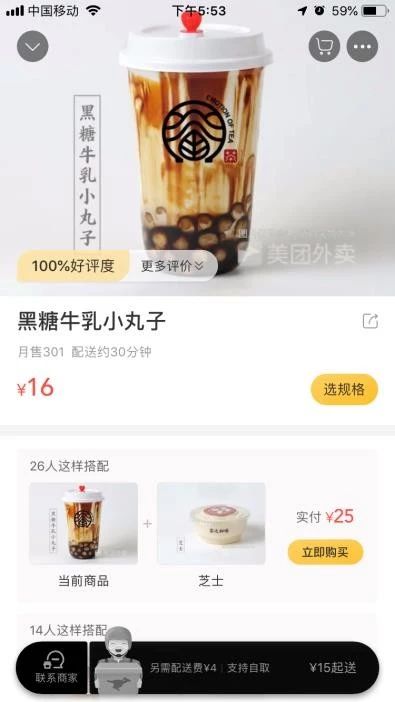 眷茶黑糖牛乳小丸子,外卖平台截图
