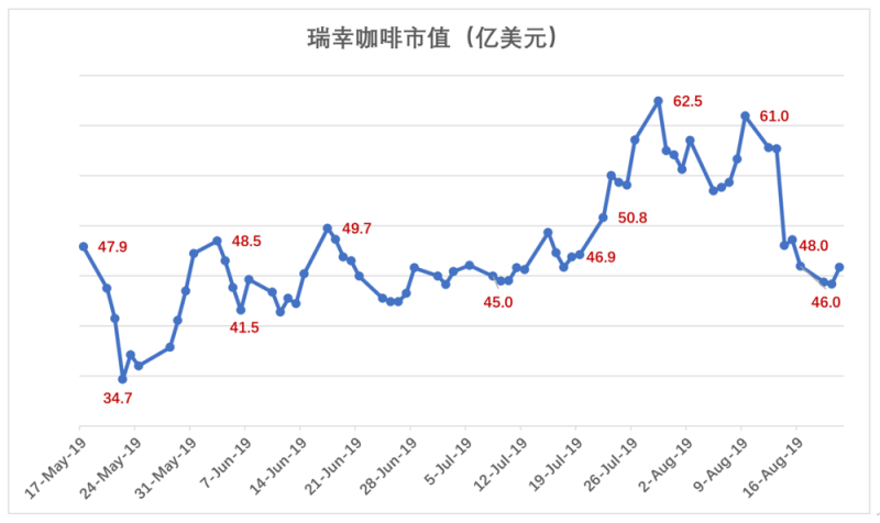 上市后,瑞幸一度跌破发行价,市值下探到34.7亿美元。但股价迅速回升,在40亿美元~50亿美元的“箱体”中运行。SEC文件显示多支国际基金建仓,期间瑞幸咖啡与星巴克股价呈现同步涨跌的景象。