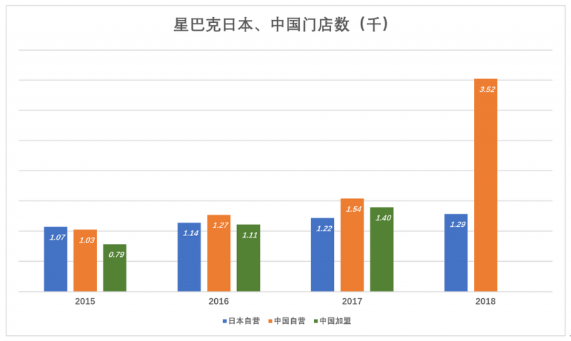 前面分析过,星巴克真正的财路是向加盟店收费,所以在泛美地区加盟店占比超过四成,在日本、中国采取的“纯自营”并非星巴克的最优策略。
