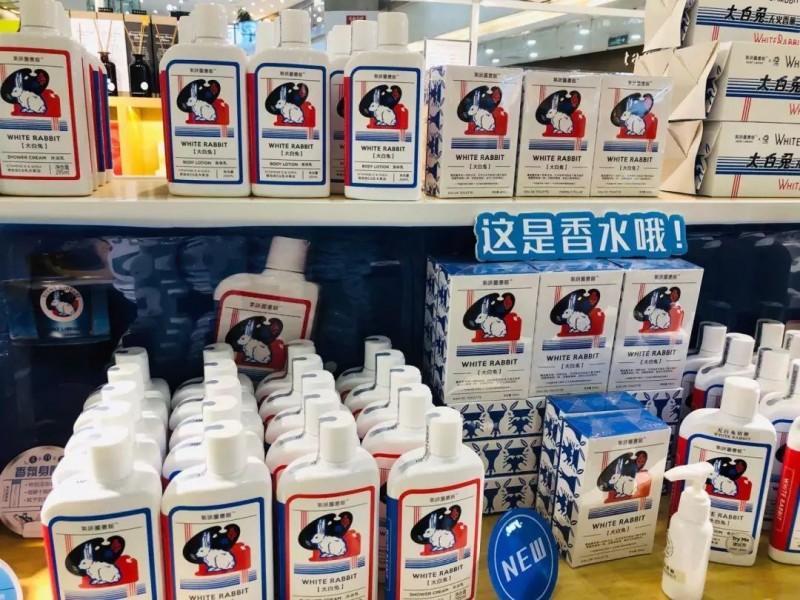 就在这周末,我逛街的时候,还在商场里看到大白兔的日化专柜,货架上摆满大白兔的香水、身体乳等一大票产品。我试用了下身体乳,扑面而来的果然是奶糖的味道,香水亦如是。