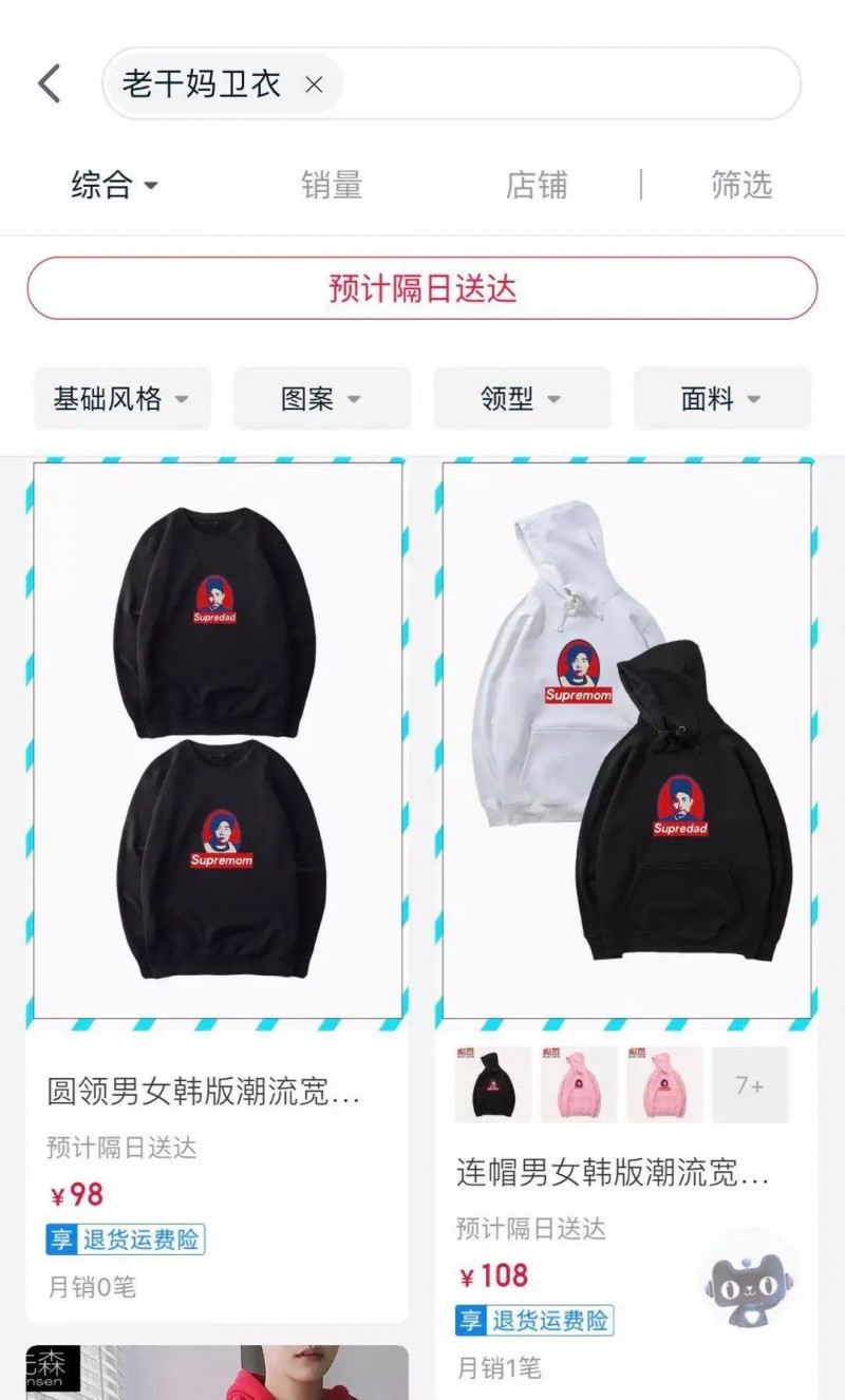 去年,来自贵阳的设计团队出于对当地老干妈工厂的情愫,迸发灵感,以老干妈商标为原型,设计出老干妈卫衣。后来,老干妈官方出品的卫衣还登上纽约时装周,该话题一度占据微博热搜。