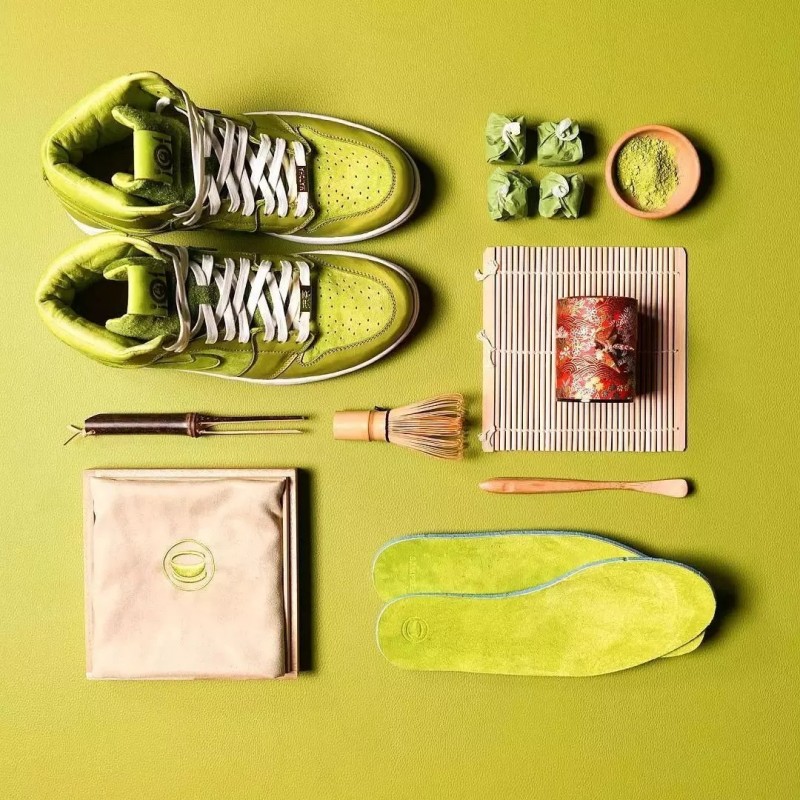 去年底,球鞋定制团队Chase Shiel定制了一款抹茶配色的AJ 1,除了配色上采用了抹茶配色之外,在材质上还有几处细节都有抹茶元素。