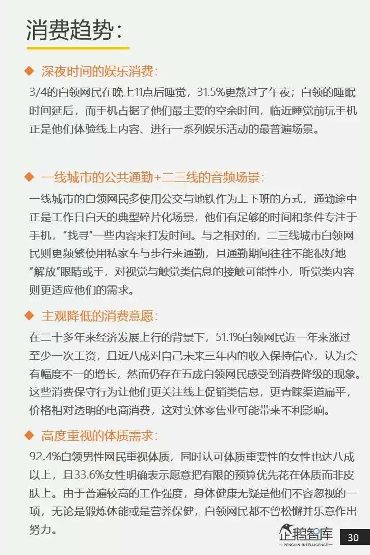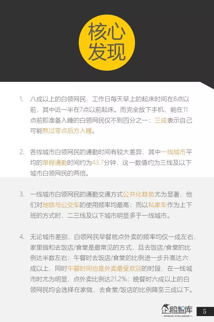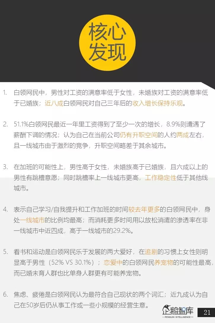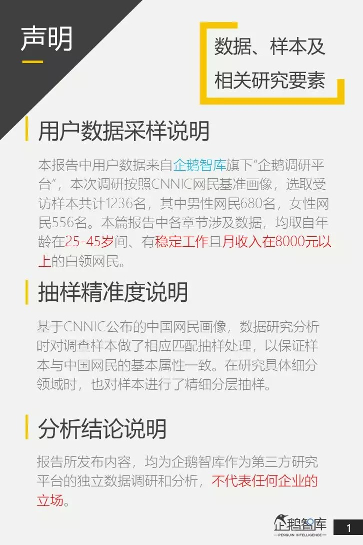 为此,企鹅智库通过对全国范围内25-45岁,月收入在8000元以上的核心白领网民,进行了抽样调研,并以他们作为核心研究对象,来呈现和分析整个白领网民群体的行为和心理,最终撰写发布了《中国白领网民生活&消费调查报告》。