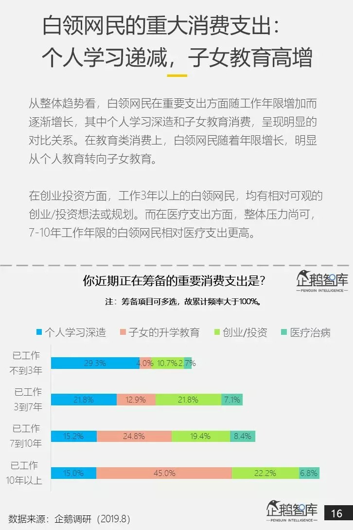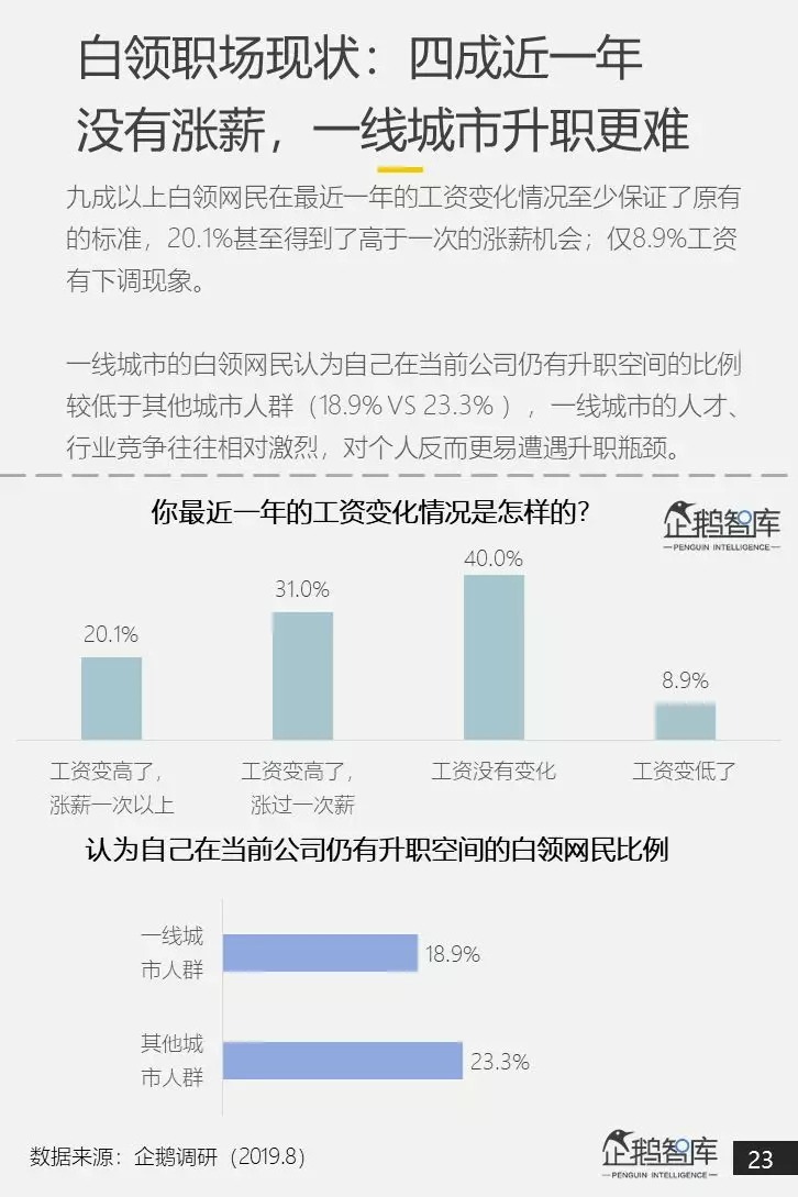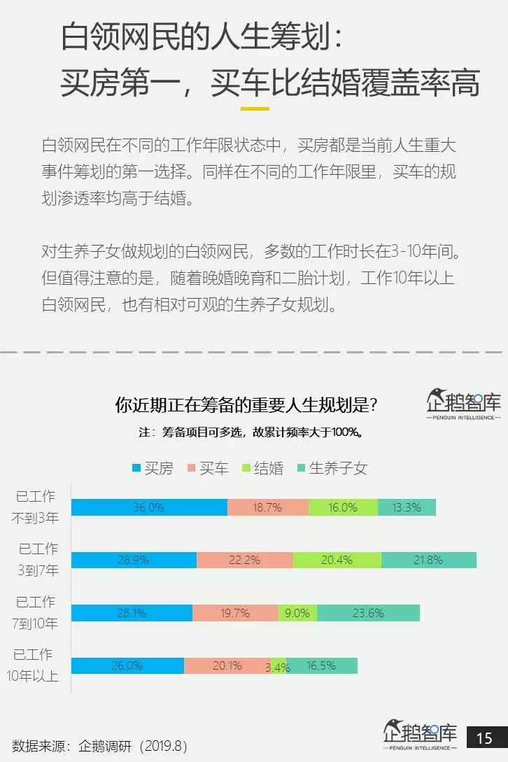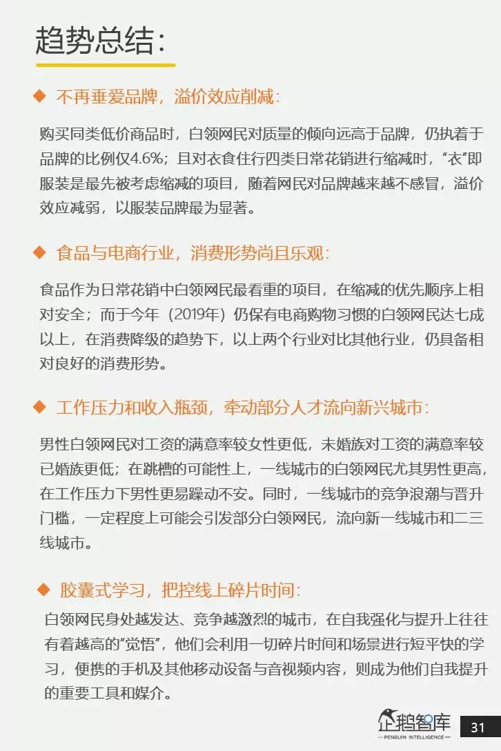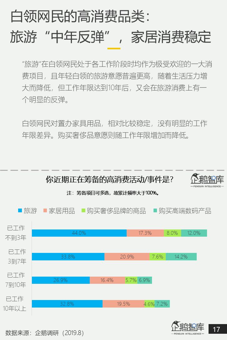 在这个意义上说,研究中国白领网民,在今天的生活状态和消费观念,不仅是对这样一个庞大头部消费群体的有益洞察,还是对更广泛的中国消费者人群(被带动者)进行一次“提前眺望”,去预测他们在未来有可能出现的新消费特征。