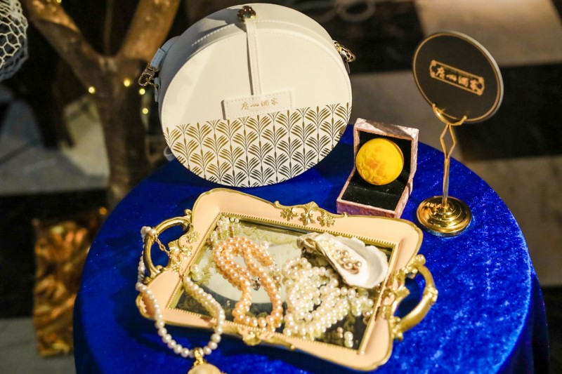 改变也在行业内发生,还是组团的形式。今年中秋节,广州酒家上线了一款拎包样式的月饼礼盒——缀有艺术压花纹样的白色圆形皮包。如果不是烫金LOGO,很难想到里面装的是月饼。