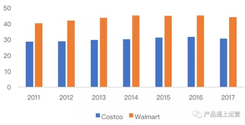 净利率:沃尔玛约为1.3%(2019年2月财报),Costco为2.2%(2018年底财报);