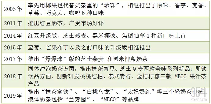 “MECO”牛乳茶、“兰芳园”丝袜奶茶就是为了应对季节空白市场而研发的新产品,丰富了旗下杯装奶茶的品类。在个性化、年轻化的品牌输出上,香飘飘结合各类季节及节假日的消费热点,创新推出限定款奶茶,如“樱味遇见”、“唯你桃醉”、“果汁茶圣诞款”等限量产品。