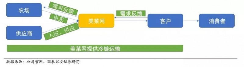 (美菜网F2B供应链模式简图,来源国泰君安报告)