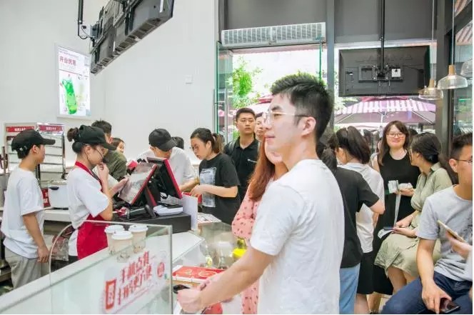 新的直营店也推出了两款新品:莓满桑葚,荷叶嘟嘟奶茶。从现场反响来看,门店排起了长龙,场面非常火爆,顾客大多给予好评。据他们的研发人员介绍,升级后的1828王老吉将平均每45天更换2-3个新品,采取末尾淘汰制,淘汰2-3款产品上新品。