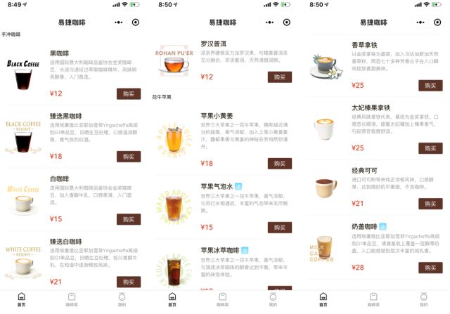 在实体店面世的同时,易捷咖啡小程序也已经上线,产品定价为12元到28元,包含咖啡、茶饮、果饮等品类,以满足不同的消费人群。