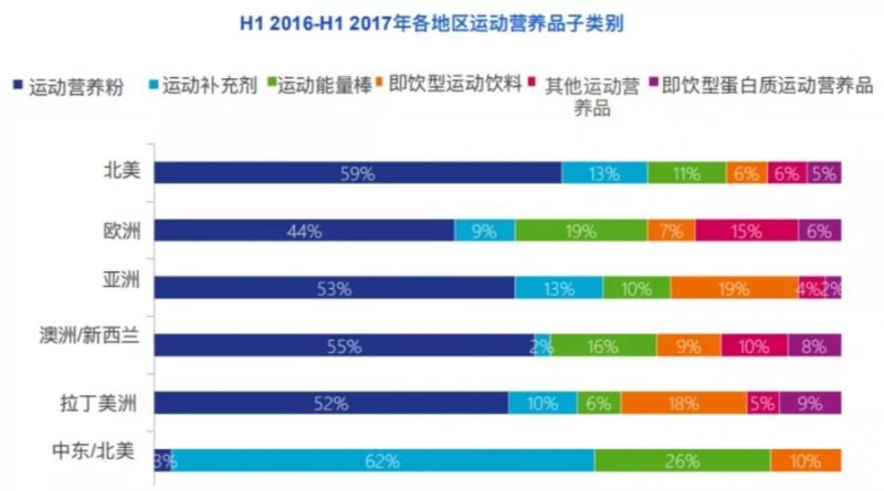 据Innova数据显示,目前全球各地区运动营养品子类别中,运动营养粉占比最高,在亚洲地区亦是如此。同时据欧睿国际报告显示,更多轻便形态的运动营养产品正在逐渐普及。▼