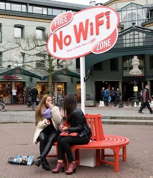 很多品牌都会在线下投放互动广告, Kitkat 也不例外。但 Kitkat 的线下互动广告只有一个目的:随时随地让你放松。