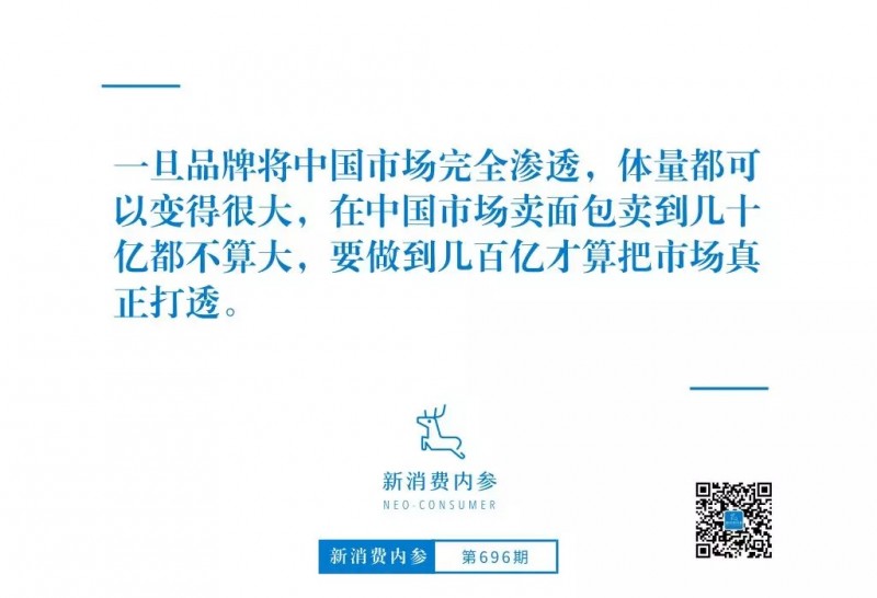 一旦品牌将中国市场完全渗透,体量都可以变得很大,在中国市场卖面包卖到几十亿都不算大,要做到几百亿才算把市场真正打透。