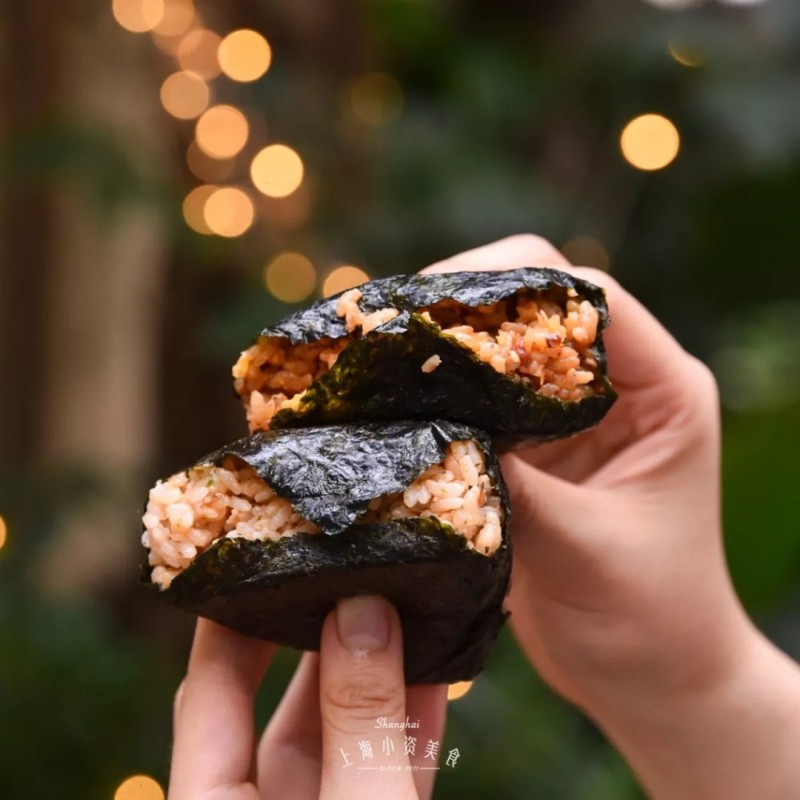 香辣鸡肉脆骨饼圆形饭团一起组团出道的烤蛋茄汁圆形饭团,握在手里就像颗小太阳。(烫~)