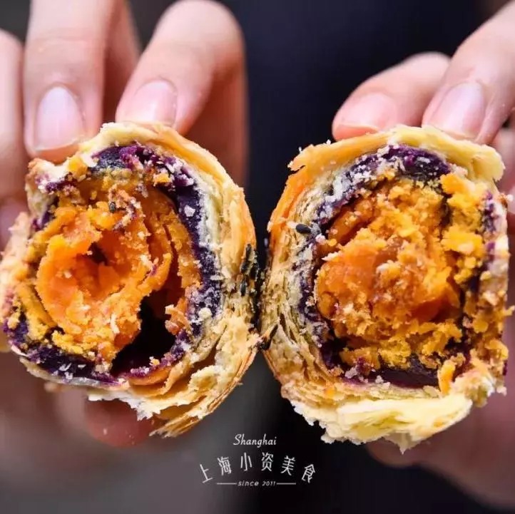 酥皮带着迷人的蛋香,丰富的配料带来了令人愉悦的层次感,甜口蛋黄酥,紫薯泥偏厚重。