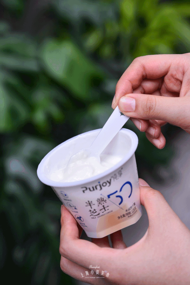 日系风的包装(莫名惹人喜爱),酸奶质感稠厚得如希腊酸奶,过高的甜味掩盖了芝士的气味。