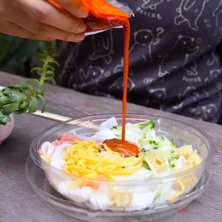 滑溜溜的米粉,吸味功力很强,搅拌四五下筷,红辣辣的酱汁就染遍了整碗米粉。