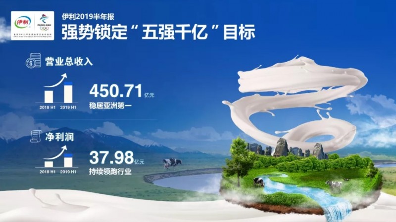 2019年上半年,伊利营业总收入450.71亿元,净利润近40亿元,再创亚洲乳业新高。
