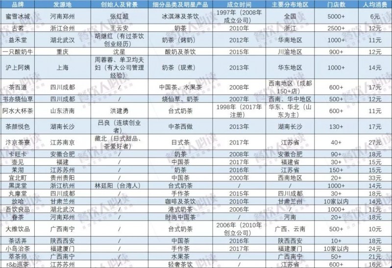 毕竟中国市场又大又深,以上的几十家“地头蛇”茶饮品牌(在当地知名度较大)只能算是管中窥豹。