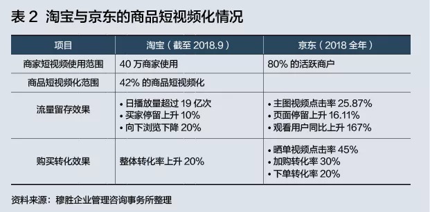 事实上,内容带货的优势已经被业内普遍认可。淘宝总裁蒋凡认为,商品就是内容。他判断未来淘宝上可能90%的内容都将用视频(包括直播)的方式来承载。这种判断看似激进,实则点出了趋势。以现在最火的小视频为例,我们可以发现淘宝和京东都进行了相应布局,并取得了惊艳的成绩(表2)。