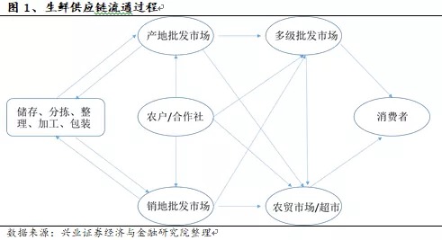 1.1我国生鲜供应链现状:上下游极度分散+中游多层级